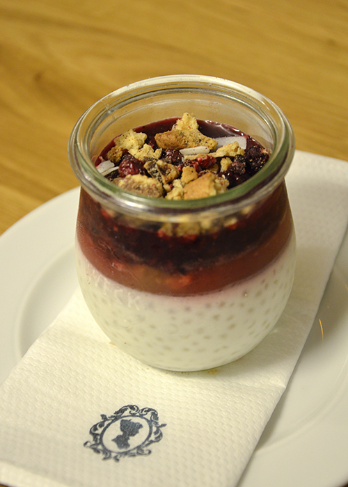 Tápiókapuding erdei szárított gyümölcsökkel és morzsával: