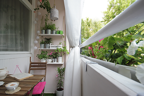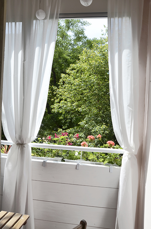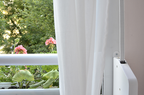 A függönyről még nem írtam, pedig az egyik legtutibb eleme az egész erkélynek, és ráadásul elég olcsó is! A karnis, a konzol és a függöny is a legegyszerűbb Ikeás darabok, összesen 6.000,- Ft-ba kerültek (mondjuk ez volt az az eset, amikor két fúrószáramat is megette a panel, szóval kicsit mégis drágább mulatság volt ez, de ezt leszámítva költséghatékonynak mondható).