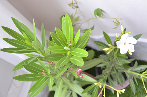 A leandereket amúgy Anyukám bizniszelte a fb-on keresztül (annyira menő), és egy vidéki kiruccanás keretében el is hoztuk Márta nénitől, akinek ámulatba ejtően szép növényei voltak, szóval gondos kezek közül került ide mindkét darab.