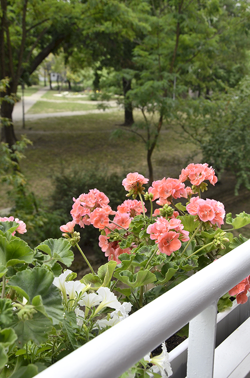 Mindig is szerettem itthon dolgozni, de most aztán különösen menő dolognak érzem, hogy egész nap szabad levegőn, mégis félig árnyékos helyen, illatos növények között, – a lakótelepi viszonylathoz képest meglepően csodás – zöld fákkal teli panorámával lehet a laptopon molyolni, vagy egyéb olyan munkát végezni, amihez elég egy 50×60-as asztal.
