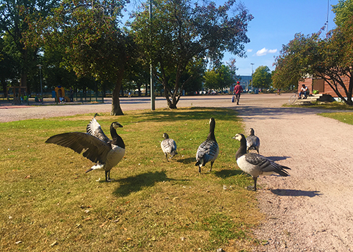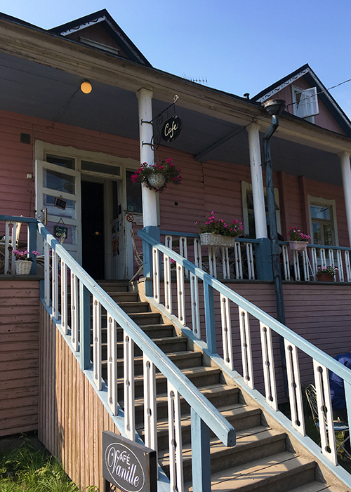 Tamperében is sokat mászkáltunk utcákban, parkokban, hidakon át. Egyik sétánk közben bukkantunk a Tallipihan Kahvila nevű irtó cuki kávés-sütis helyre, ahol ebédet is felszolgáltak. Ha egyszer Tamperében jártok, ne hagyjátok ki, az egész hely annyira kedves, barátságos. Az egyetlen zavaró tényező talán az volt, hogy elég sokszor darazsak keringtek körülöttünk, de nem csak itt, hanem többször is az utunk során.