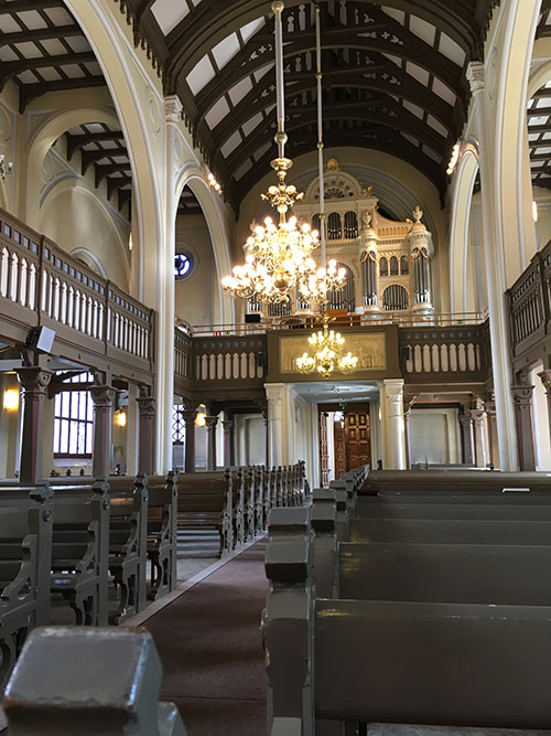 Egyébként elég sok helyen futottam bele zománccal festett(!) padlóba, szóval lehet, hogy nem is olyan nagy bűn fa padlót festékkel elfedni… Ez itt pl. az Old Church és annak padlója:
