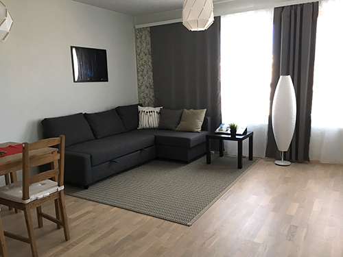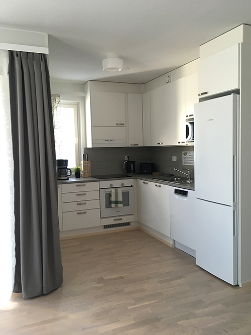 A szállásunk ezúttal egy teljesen újonnan átadott apartman volt, full felszerelve, tisztán, benne szaunával, amit egy éjszakára most mindössze 95 euróért adtak nekünk (mivel még nem volt bekötve a mosógép, és az erkélyen hiányoztak a kiülős bútorok). Itt készítettem is két fotót:
