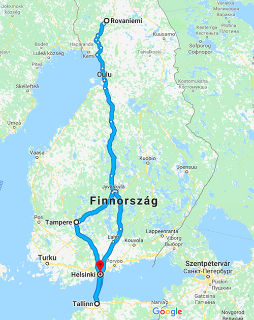 Rovaniemiből szintén a már említett éjszakai vonattal tértünk vissza délre, Helsinkibe. Itt ismét volt fél napunk egy kis városnéző császkálásra és a Kiasmába is bementünk, ahol kortárs művészetek alkotásai tekinthetők meg. Elég érdekes kiállítások voltak, jól el is ment az idő, de persze itt sem hagyhattuk ki a kávézót és a menüt. Aztán persze meg izgultunk, hogy elérjük a Tallinnba induló kompot, amire már meg volt váltva a jegyünk. Egyébként minden szállásfoglalást és a vonat/komp jegyet még utazás előtt intéztünk, megváltottunk.