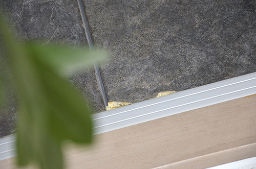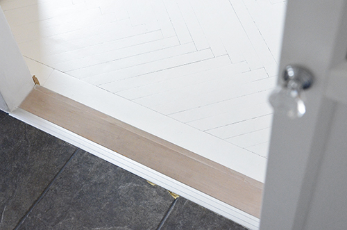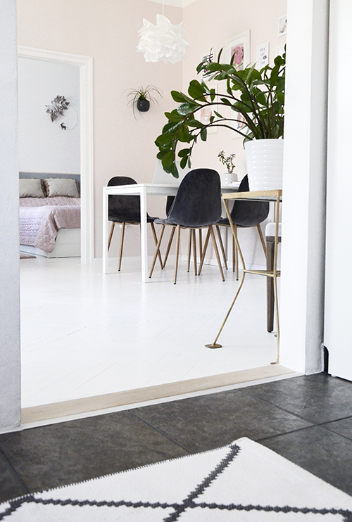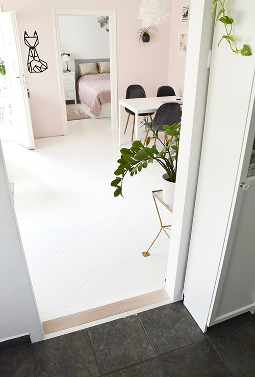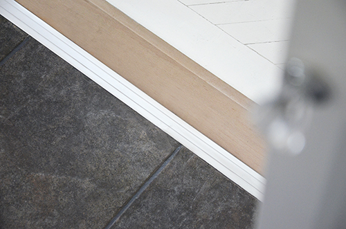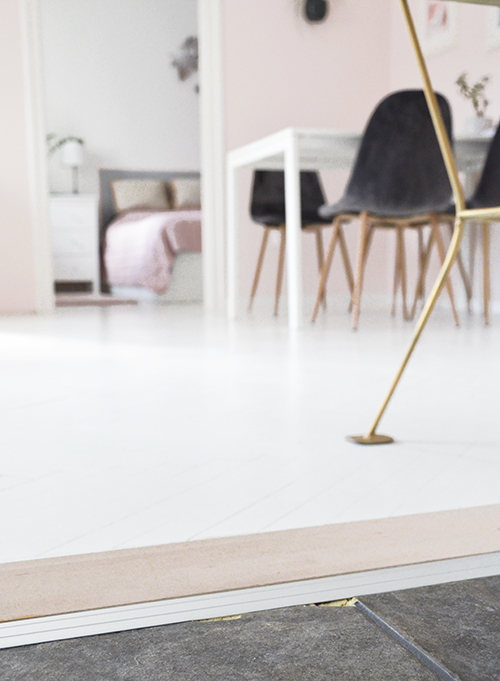 Tádám! Messziről egyáltalán nem látszik, közelről pedig csak az veszi észre, aki tud erről a diy turpiszságról. Egyébként nyilván felmosáskor megváltozik a színe, de száradás után újból egybeolvad a járólappal.