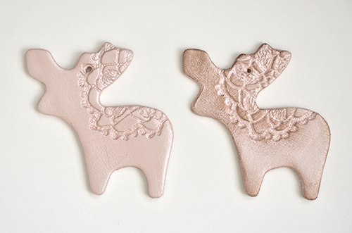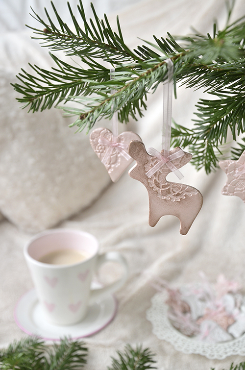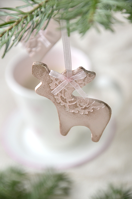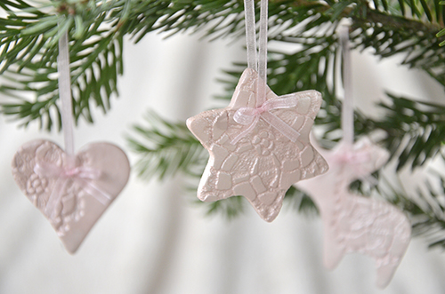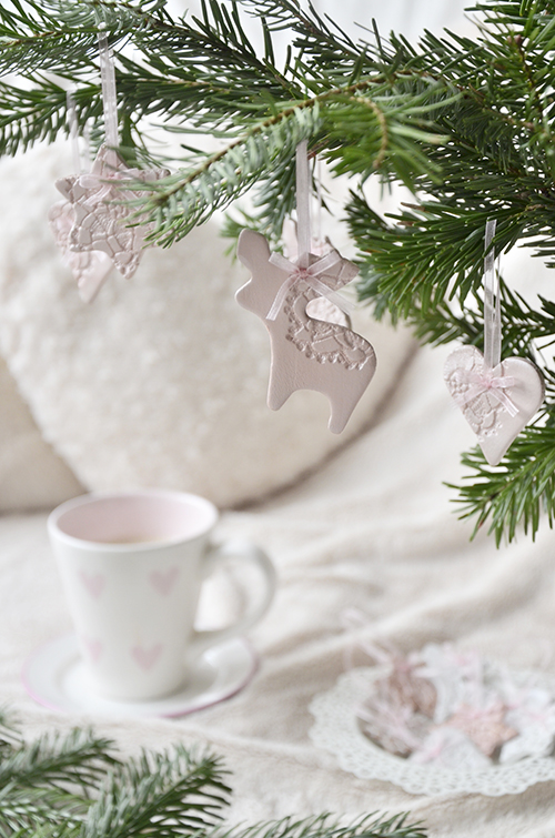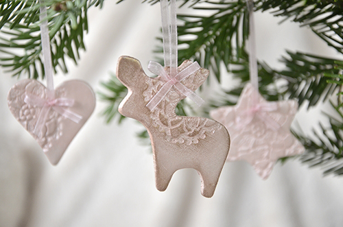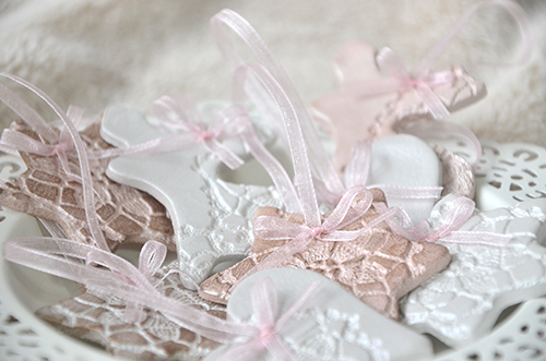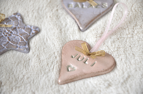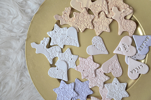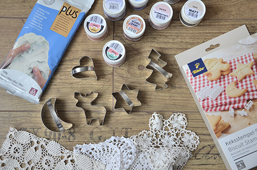 Az ötlet egyszerű – és egyébként lerágott csont -, de mindenképpen szerettem volna csinálni ilyen díszeket. Arra is kíváncsi voltam, hogy vajon hány darab jön ki egy 500 grammos adagból, mert a gyurma maga csak 600,- Ft, így viszonylag olcsó alapanyag egyedi díszekhez. Elővettem a kiszúróformákat, csipkét, különféle akrilfestékeket és a tavaly szerzett Tchibo betűnyomdámat (amit még csak mézeskalácsokhoz használtam).
