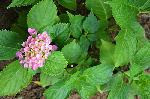 A díszkert szélén, viszonylag árnyékosabb részben bújik meg a hortenziám, ami pár napja végre ki is nyílt: