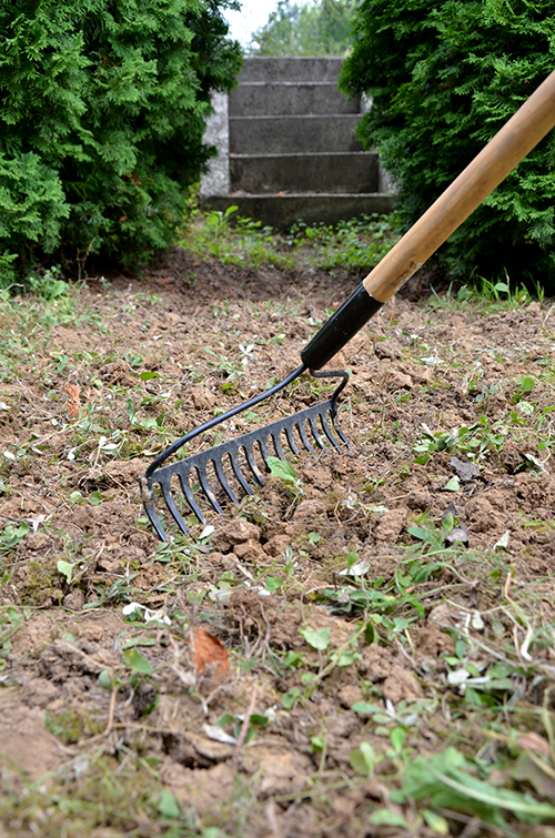 A kiásott részt elegyengettem, a tuják alól még húztam bele földet.