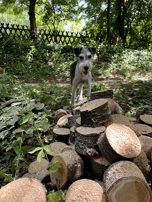 Az összes levágott faágat feldaraboltam, a meggyfából mindössze egy 120 cm magas csonk maradt a földben, ami még várja, hogy valamit kitaláljak belőle… Van pár ötletem, ha valamelyiket megvalósítom, arról is biztosan lesz bejegyzés.