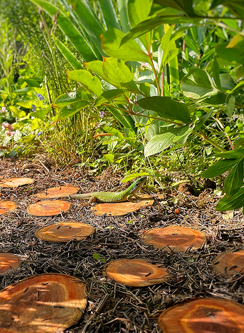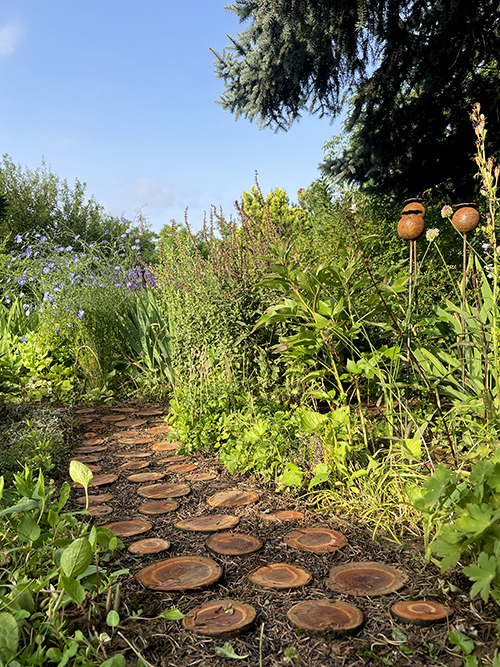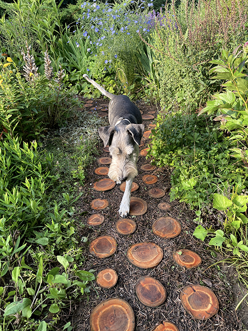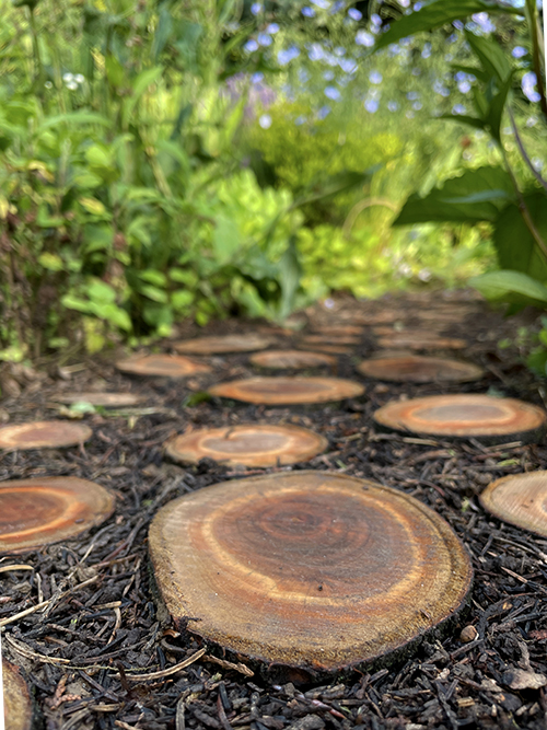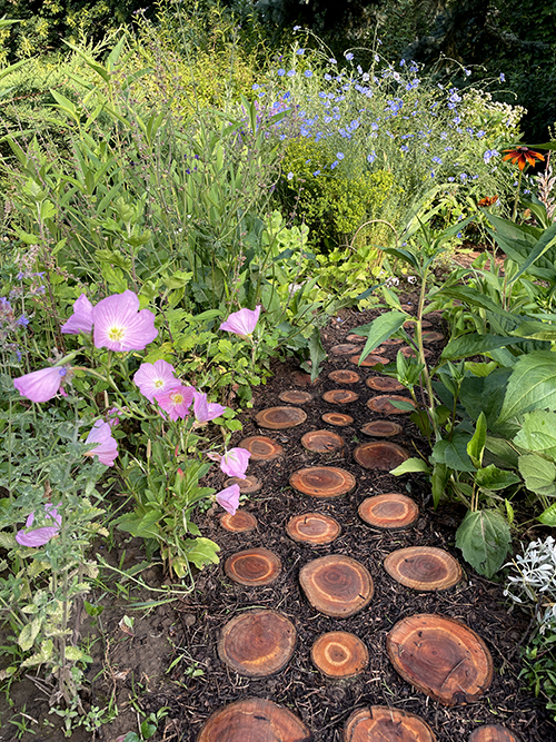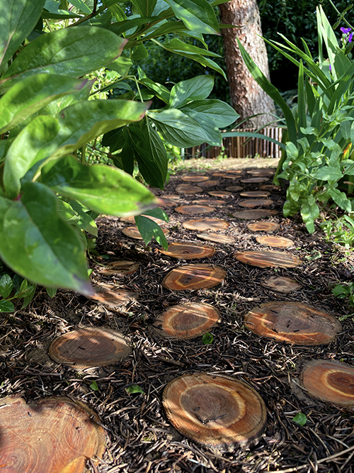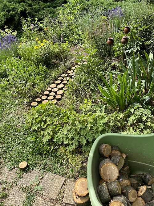 Mihez lehet kezdeni egy kivágott fából keletkező faanyaggal? El is lehet szállíttatni vagy széthasogatva fel lehet használni tűzrakáshoz a hétvégi bográcsozásnál, de még jobb, ha valami újat alkotunk belőle a kertben. Ebben a bejegyzésben azt mutatom meg nektek, hogyan készítettem az öreg meggyfámból kerti ösvényt, mely a díszkert csodásan virágzó növényei között kanyarog…