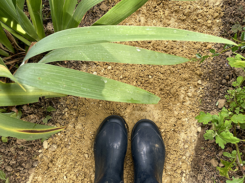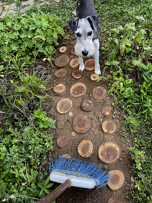 Ezután pedig több körben visszakerült a kiásott, kikaprigált föld a szeletek közé, amit kicsit belocsoltam, majd száradás után megint ment rá egy adag föld. Nyilván, kell még idő, míg magától betömörödik újra föld, de az ösvény már használható.