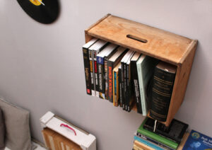 Egy felfordított kosár az éjjeliszekrény, ezen kívül még egy puffot raktam be…