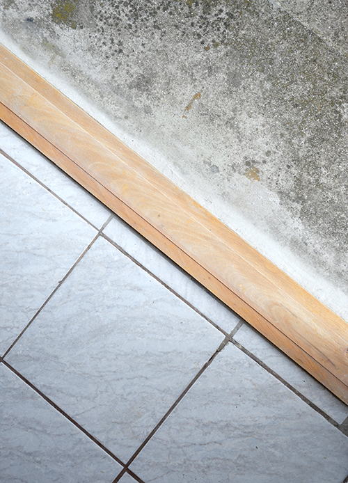 24 óra elteltével a küszöb és a beton találkozását fagyálló csemperagasztóval nyomtam ki, és ugyanez került belülre is a járólap és a küszöb illesztéséhez. Nem ez a szakszerű megoldás, de a helyzet az, hogy működik a dolog, az új küszöb rögzítése után megszűnt a pincében a nedvesség kicsapódása, és az előszobába sem folyik be a víz.