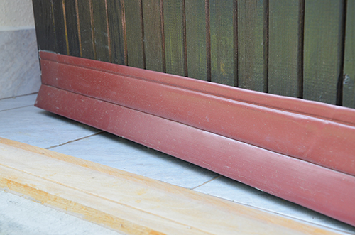 De addig is átmeneti megoldásként felrögzítettem egy műanyag, rugalmas „takarólécet” (ami amúgy beltéren használatos, de volt a pincében és kapóra jött), így amikor nagy eső van, vagy amikor nem vagyok ott, mindig a küszöbre hajtom, ezzel is védve ezt a részt a víztől.