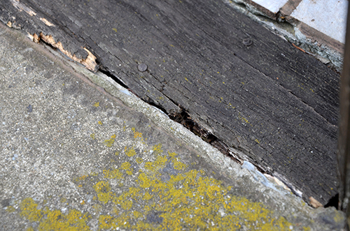 Na mondom, akkor nézzük csak meg közelebbről ezt a küszöb kérdést. A kiemeléssel nem is volt gond, lazán kijött a korábban szögekkel rögzített elem. Nem csoda, hisz az alatta lévő párnafa is megadta magát. Totálisan.