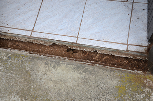Realizáltam, hogy mélyen, a beton alapnál egy – a küszöbbel párhuzamosan futó – illesztés mentén viszont van egy pár mm-es rés. Na most, nagy esőzéseknél valószínűleg ide folyt be az a rengeteg víz, akár több órán keresztül is.