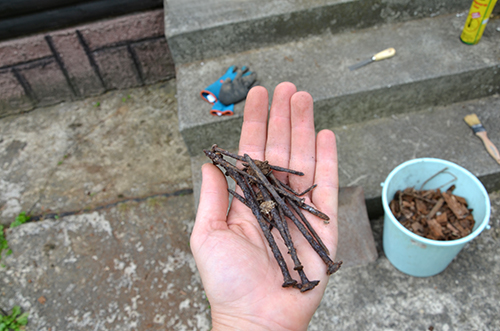 Kb. két órán keresztül csak pucoltam ki az egészet, könyékig nyúlkálva addig a részig, ahol már ép faanyagot találtam. Volt itt hangyaboly, bogárkák, ezen meg sem lepődtem, de alapos tisztogatás után beszórva hangyaporral ezt is kipucoltam.