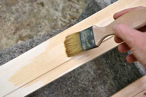 Végül a szélesebb lett a nyerő, amit először méretre vágtam dekopír fűrésszel, majd lekezeltem favédő lazúrral, két rétegben.