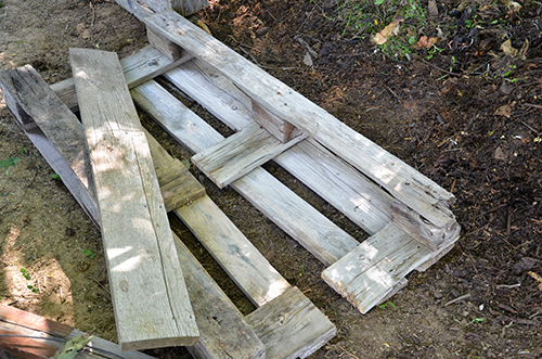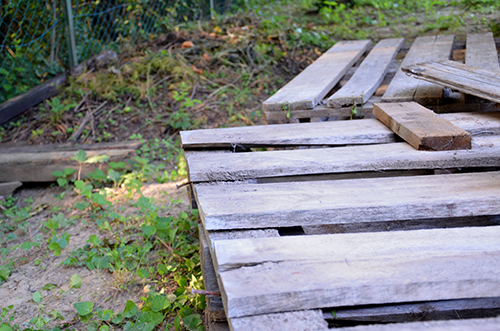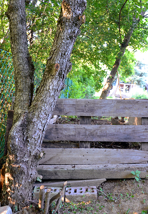 Korábban, úgy képzeltem, hogy majd teljesen új lécekből fogom a komposztálót körbekeríteni, aztán később rájöttem, hogy régi, viharvert raklapokból is jól mutatna, sőt!