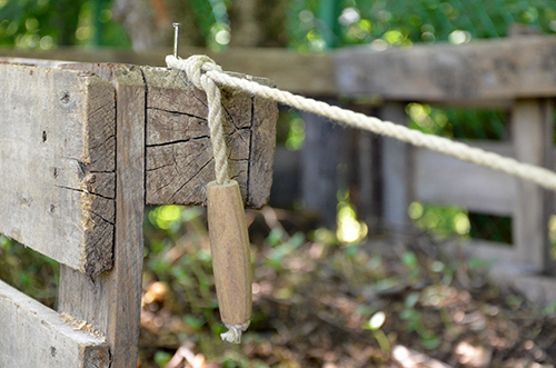 A régi (gyerekméretű) ugrálókötélre egy-egy hurkot kötöttem, azokat pedig szögekre akasztottam.
