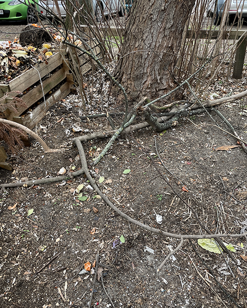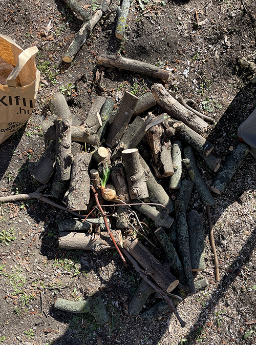 Hoztunk még zsákokat azokhoz a hulladékokhoz, amiket a komposztálóból szedtünk ki, mert nyilvánvalóan ilyen is kerül bele időnként… Illetve a parkban az elmúlt napok szélviharai miatt rengeteg szemét gyűlt össze, ezt is mind felszedegettük.