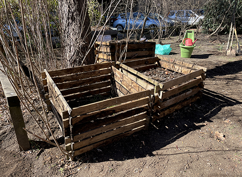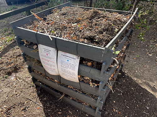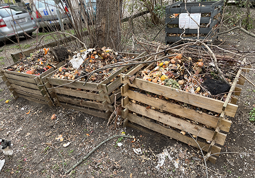 Na de, ennyi bevezető után rátérek a közösségi komposztálóinkra. 2019 óta még két új komposzt kerettel bővült a meglévő készlet, egyiket ismét az egyik kedves szomszédom vette, a másikat a Zuglói Önkormányzat biztosította számunkra (ingyen), miután a lakókkal közösen igényeltünk egyet. Így van most már három fa keretes és egy műanyag komposztálónk.