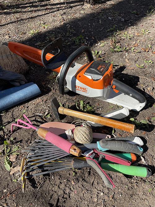 A szükséges eszközökkel, szerszámokkal úgy voltam, hogy amit csak lehet elhozok a faháztól, így biztosan mindenki kezébe jut majd hasznos szerszám és ezzel együtt feladat is.