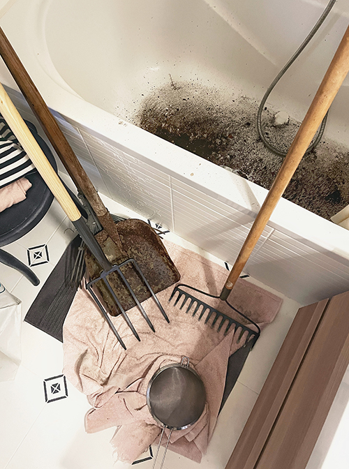 Ilyenkor egy lavor és egy – a lefolyó nyílásához tett – rongy sokat segít abban, hogy föld véletlenül se kerüljön a lefolyóba.