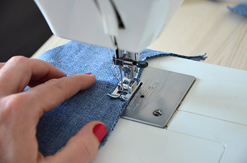 Ezután varrógéppel összevarrtam a formát, kb. 4-5 cm-t meghagyva a kifordításnak. Kifordítás után megtömtem farmercsíkokkal a halacskát és kézzel összeöltöttem a nyílást. Kis kulisszatitok, hogy amíg én a varrógépen ügyködtem, addig Franci befoglalta a bőröndöt: