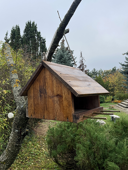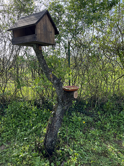 Volt egy kis meggyfám, ami felett sajnos eljárt az idő… Egy ideje már alig volt termése, így fokozatosan elkezdtem lefűrészelni az ágait, de kivágni semmiképpen nem szerettem volna, mert a törzse, és a fő ága elég erős ahhoz, hogy egy madáretetőnek és itatónak egy pár évig még alátámasztást adjon.