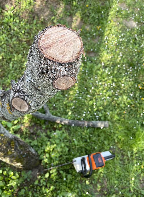 Láncfűrésszel nagyon gyorsan és egyszerűen lehet egyenes vágásvonalat kialakítani, amire tökéletesen rá lehet illeszteni a madáretetőt.
