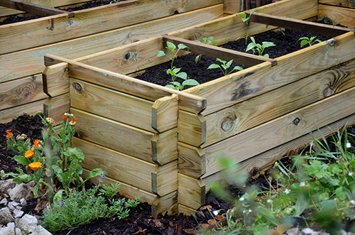 A négyzetes formájú magaságyások vannak a legközelebb a házhoz.