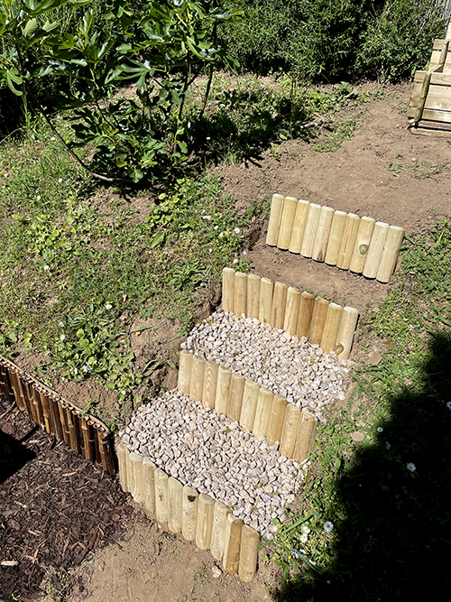 A másik, amit még külön kiemelnék az a rézsűn kialakított lépcső: