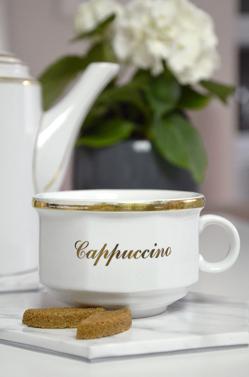 Ez egyébként az egyik kedvenc cappuccinos csészém, annak ellenére, hogy az arany szegély már erősen kopott rajta. Bolhapiacon bukkant rá Anyukám.