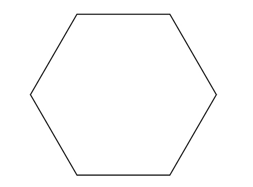 Hexagont, azaz szabályos hatszöget remélem, mindenki tud szerkeszteni körzővel. Ugye? A világ legegyszerűbb dolga, csak kinyitjuk a körzőt, húzunk egy kört és a köríven végighaladva ugyanazzal a körzőnyílással kijelöltük a csúcspontokat (jelöl, beleszúr, jelöl, beleszúr…). Ez esetben érdemes kb. 6-7 cm-es körzőnyílással dolgozni. A biztonság kedvéért itt van egy sablon, ezt nagyobb méretben kell kinyomtatni: