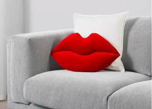 A tárgyakon lévő nagy B betű egyékébként a „Be who you are” kezdőbetűje, ami Bea jelmondata. Ebből kiindulva a vörös száj alakú párnából (a vörös rúzs egyébként a tervező védjegye) a nagyobbikat vettem meg, viszont nem magamnak, hanem egy nagyon kedves Barátnőm szülinapjára, aki remek érzékkel és stílusosan tudja kombinálni a fekete-fehéret, a vörös rúzs pedig irtó dögösen áll neki.