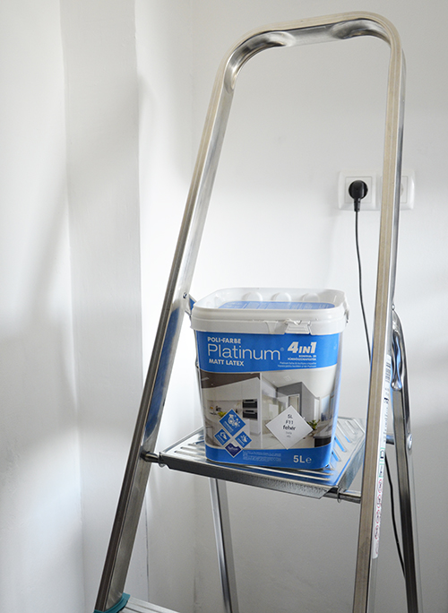 Szóval kihúztam a hűtőt és első körben a falat tettem egy kicsit rendbe festéssel. Ezúttal is a Poli-Farbe Platinum falfestékét használtam, most viszont a 4in1 típust, ami matt, latex bevonatot képez, erről korábban a falbontós bejegyzésben ITT írtam. Ez ellenáll a magas páratartalomnak, nem foltosodik, könnyen tisztítható a mindenféle ráfröccsenő konyhai szennyeződésektől (olaj, kávé, bármilyen étel, vörösbor, stb…). A konyha szemközti fala ezzel van kifestve, és tényleg remekül takarítható, szóval a zónázó módszert folyatva ezzel festettem ki a hűtő körüli részt is. A gázcső végével nem sokat vacakoltam: fehér zománccal kentem át. Na, eddig volt gyerekjáték a dolog.