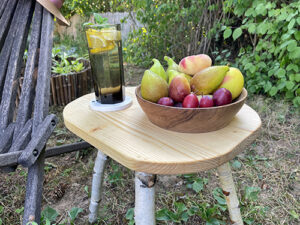A fenyőfát négy részből állítottam össze: négy darab derékszögű háromszögből, melyek leghosszabb élét még sütés előtt bevagdostam. A díszek a nyomóforma közepéből kieső apró „maradékok”. Az elemeket most is olvasztott kristálycukorral ragasztottam össze. A végén – a házikóhoz hasonlóan – fehér cukormáz, kókuszreszelék és porcukor került rá.