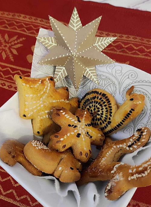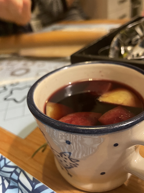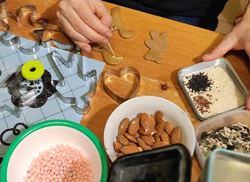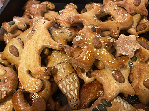 A mézespartiba mindenki visz valamit a közös élményhez: magvakat, begyúrt tésztát, kiszúró formákat, stb. Mindent megosztunk egymással, segítünk egymásnak, egymás formáiból merítünk ötleteket, miközben szól a zene és rotyog a forraltbor a fazékban, amiből jóízűen fogyasztunk, miközben díszítünk.