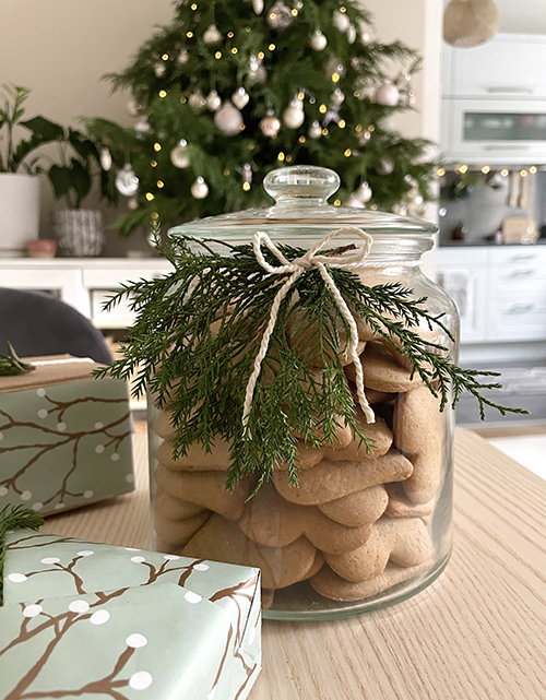 Idén több tepsi szivecske formát is sütöttem, amiket egyáltalán nem díszítettem, csak beleraktam egy nagy üvegtárolóba. Amikor elfogyott, újratöltöttem.