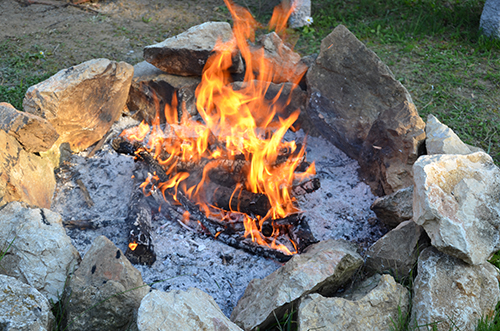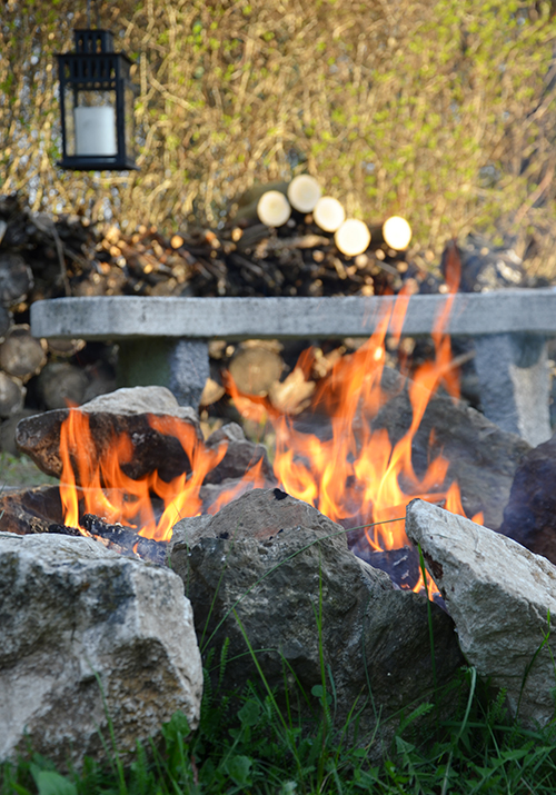 A nap vége felé közeledve tüzet raktunk az esti vacsorához. A kövekből kialakított tűzrakó hely remekül funkcionál, pont olyan a maga egyszerűségében, mint amilyennek tavaly ősszel megálmodtam (ITT).