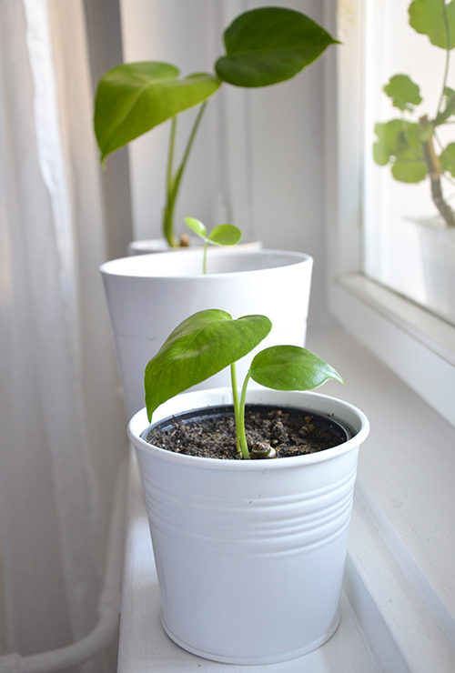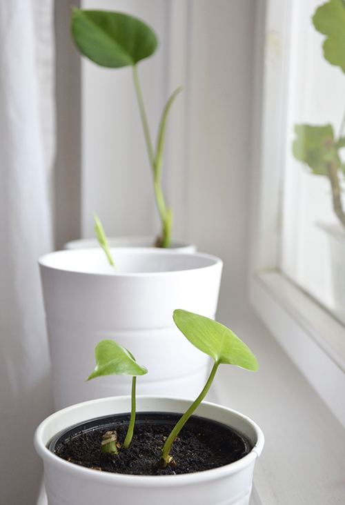 Az első monsterámat a keresztanyukámtól kaptam, 4 levéllel. Ez idővel elkezdett szépen cseperedni, folyamatosan hozta az újabb és újabb leveleket, a szár ezzel együtt szépen nőtt, de dús hatás helyett szanaszéjjel álló leveleim voltak, amin persze egy karóhoz rögzítés segített volna. Én viszont ekkor döntöttem úgy, hogy összekötözés és kitámasztás helyett (nagy levegőt véve) elkezdem szaporítani.