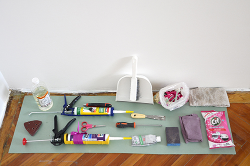 Minden munkálat előtt összegyűjtöm azokat az eszközöket, amikre feltehetően szükségem lesz és egy helyre rendezem őket. Főleg többnapos, nagyobb projektek esetén, amikor jó eséllyel kallódnának el a dolgok különböző időpontokban a lakás különféle pontjain, amitől biztosan agybajt kapnék.