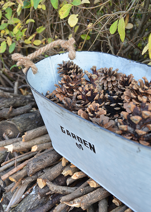 Gereblyézés közben serényen gyűjtöm a fenyőim alól a tobozokat, lesz belőlük bőven a karácsonyi koszorúkhoz és dekorációkhoz.