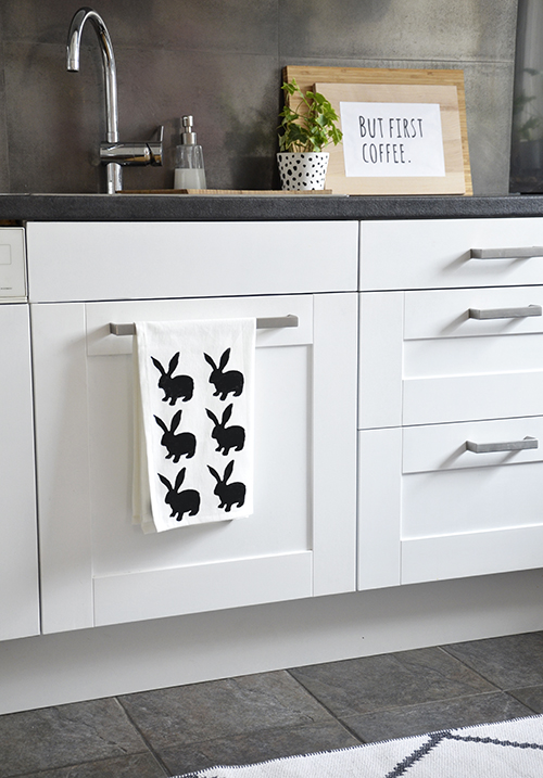 A nyomdázott nyuszipajtik pedig így mutatnak a konyhában: