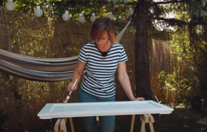 Teljes száradás után (kb. 15 perc) a mintát közepes hőfokon kb. 2-3 percig sütőfólián keresztül átvasaltam.