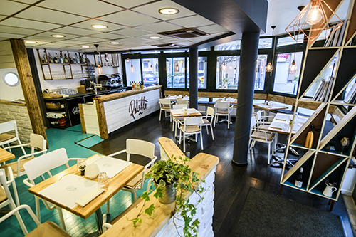 A külső részre felkerült a Paletta tábla, valamint egy égősor, ami az árkádok peremén körbefut. Néhány kedves dekoráció és halk zene várja az éppen arra sétálókat, igazán hívogató a hely, és aki betér, az biztosan nem fog üres hassal távozni.