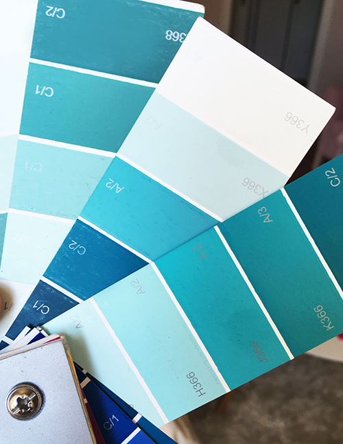 Dani nagyon szerette volna, ha valamilyen formában a Balaton kékes-zöldes árnyalata megjelenik a térben, ezért végül úgy határoztunk, hogy a dobogós részen lévő mintás laminált padló (ami pont ugyanaz volt, mint anno az én dobogómon, ITT), kapja meg ezt a színt.