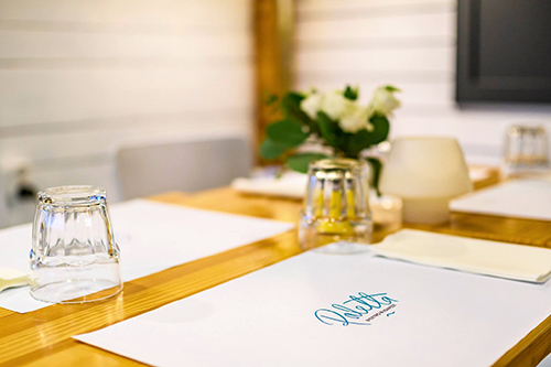A logot és a grafikai elemeket most is – ahogy Dani minden üzleténél – Kerekes Kata neve fémjelzi, a dizájn kitalálásakor párszor összeültünk hármasban egy kávéra, hogy a grafikai elemek és a belső tér koncepciója szépen fusson együtt.