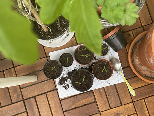 Ezeket először kiszedtem külön picike cserepekbe, és ezek itthon is maradtak, hogy megerősödjenek a kiültetésig.